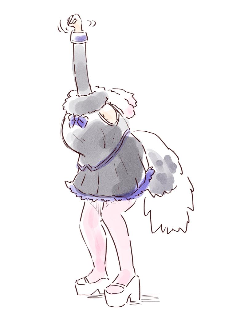 1girl bird_girl bird_tail bird_wings bow bowtie detached_sleeves high_heels kemono_friends kemono_friends_3 meme ostrich_(kemono_friends) outstretched_arm pantyhose sakuragi_rian solo tail wings