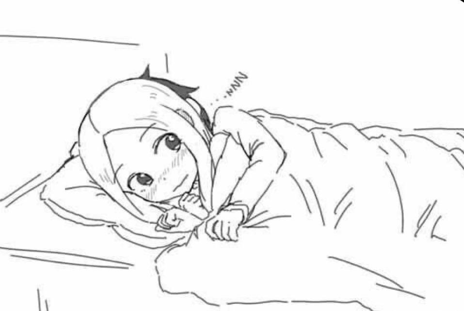 1boy 1girl arm_around_shoulder blanket blooddreaper blush hug karakai_jouzu_no_takagi-san looking_back monochrome nishikata pillow sleeping sleepover takagi-san zzz
