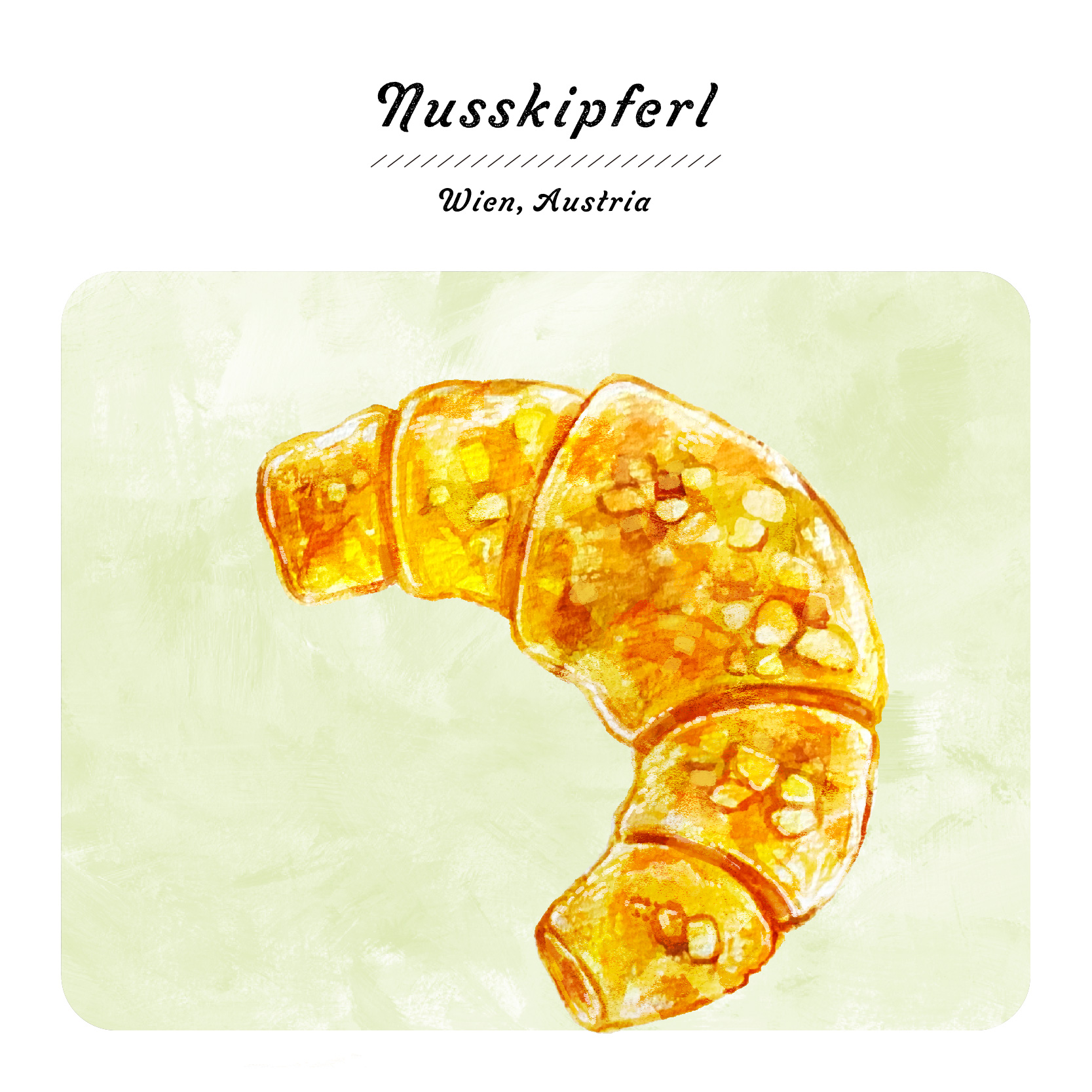 bread croissant food food_focus food_name highres no_humans original painting_(medium) still_life sumomomo traditional_media watercolor_(medium)