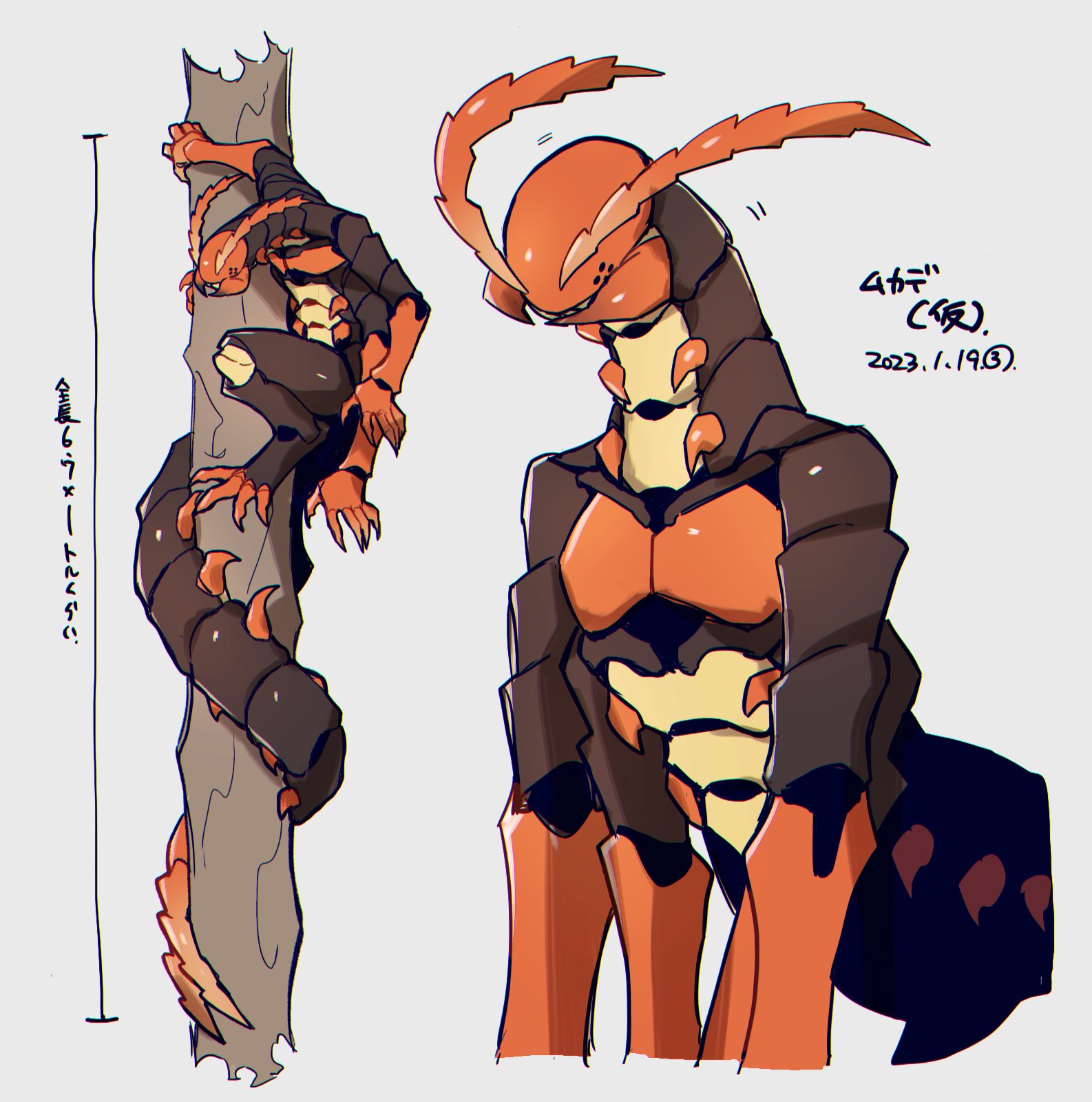 animal_focus antennae bug carapace centipede dated extra_arms extra_eyes full_body giant giant_monster highres mandibles monster multiple_legs multiple_views no_humans original sannota272 simple_background solid_circle_eyes tail tail_wrap white_background