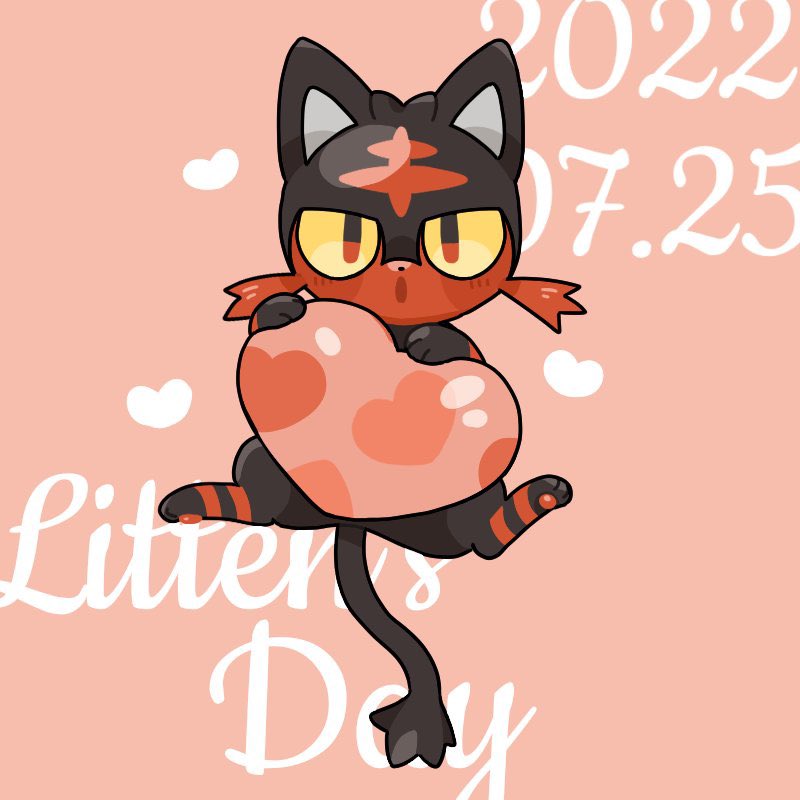 :o beans blush_stickers character_name commentary_request daifuku_(pokefuka_art) dated gen_7_pokemon heart holding litten looking_at_viewer nintendo no_humans pink_background pokemon pokemon_(creature) solo