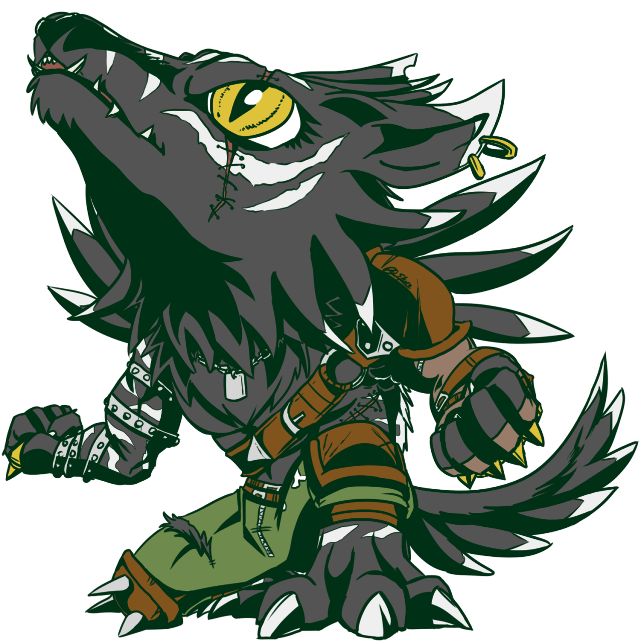 1boy belt digimon digimon_(creature) highres male_focus solo tail weregarurumon_(black)