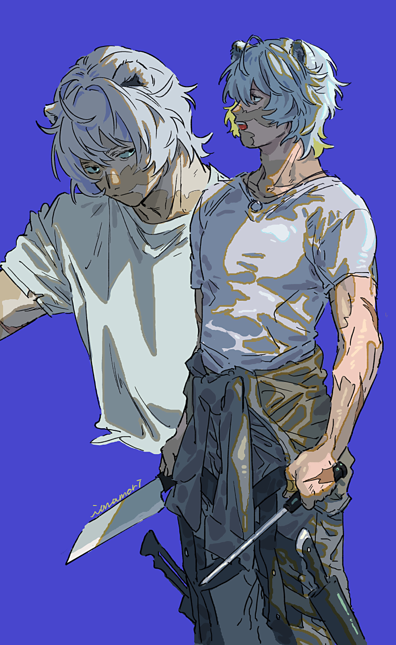 &{ID:10451323 CreatedAt:Fri Aug 02 11:45:58 -0500 2024 Score:0 Width:800 Height:1304 MD5:fe350f15f37cf959ee9e95cabf3150d9 Directory:fe/35 Image:fe350f15f37cf959ee9e95cabf3150d9.jpg Rating:general Source:https://twitter.com/imamori_syun/status/1819020253562814703 Change:1722617158 Owner:danbooru CreatorID:6498 ParentID:0 Sample:0 PreviewHeight:350 PreviewWidth:214 Tags:1boy animal_ears arknights bear_ears black_pants blue_background closed_mouth clothes_around_waist commentary feet_out_of_frame frown grey_eyes grey_jacket highres holding holding_knife imamori_shun jacket jacket_around_waist jaye_(arknights) jaye_(elite_ii)_(arknights) knife knife_sheath looking_at_viewer male_focus multiple_views open_mouth pants scar sheath shirt short_hair signature simple_background t-shirt upper_body white_hair white_shirt Title: HasNotes:false HasComments:false FileURL:https://img2.gelbooru.com/images/fe/35/fe350f15f37cf959ee9e95cabf3150d9.jpg PreviewURL:https://gelbooru.com/thumbnails/fe/35/thumbnail_fe350f15f37cf959ee9e95cabf3150d9.jpg SampleURL: SampleHeight:0 SampleWidth:0 Status:active PostLocked:0 HasChildren:false IsVideo:false DisplayDate:02.08.2024 11:45}