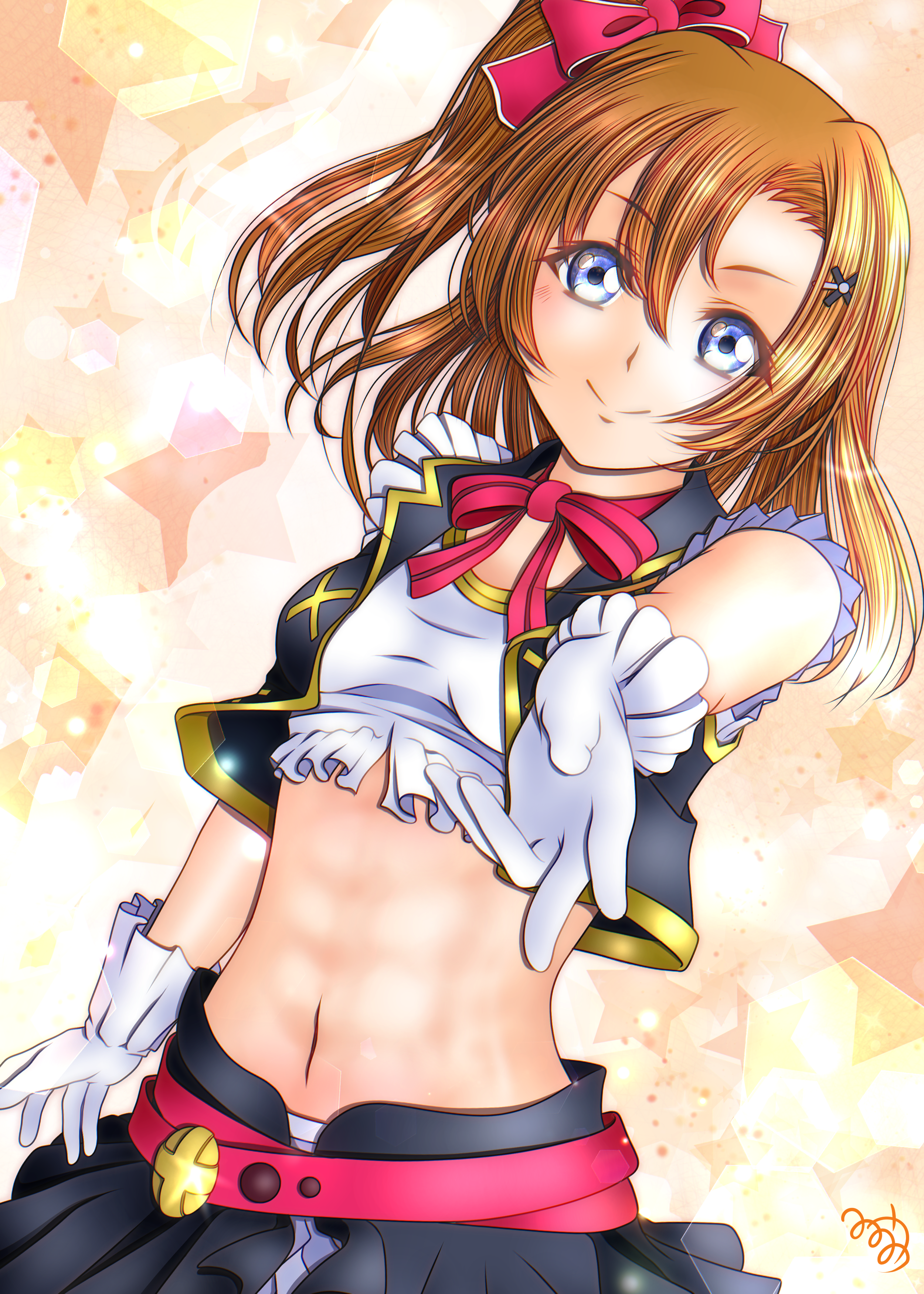 1girl absurdres blue_eyes gloves highres kosaka_honoka looking_at_viewer love_live! love_live!_school_idol_project minami_saan one_eye_closed one_side_up open_mouth orange_hair short_hair smile solo white_gloves