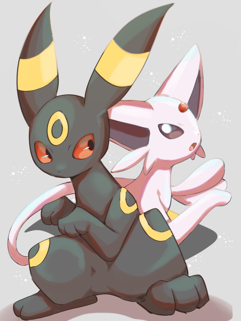 animal_focus black_eyes colored_sclera espeon forehead_jewel gen_2_pokemon hp7car7nxrq5s7q nintendo open_mouth pokemon pokemon_(creature) purple_eyes red_sclera sidelocks sitting umbreon