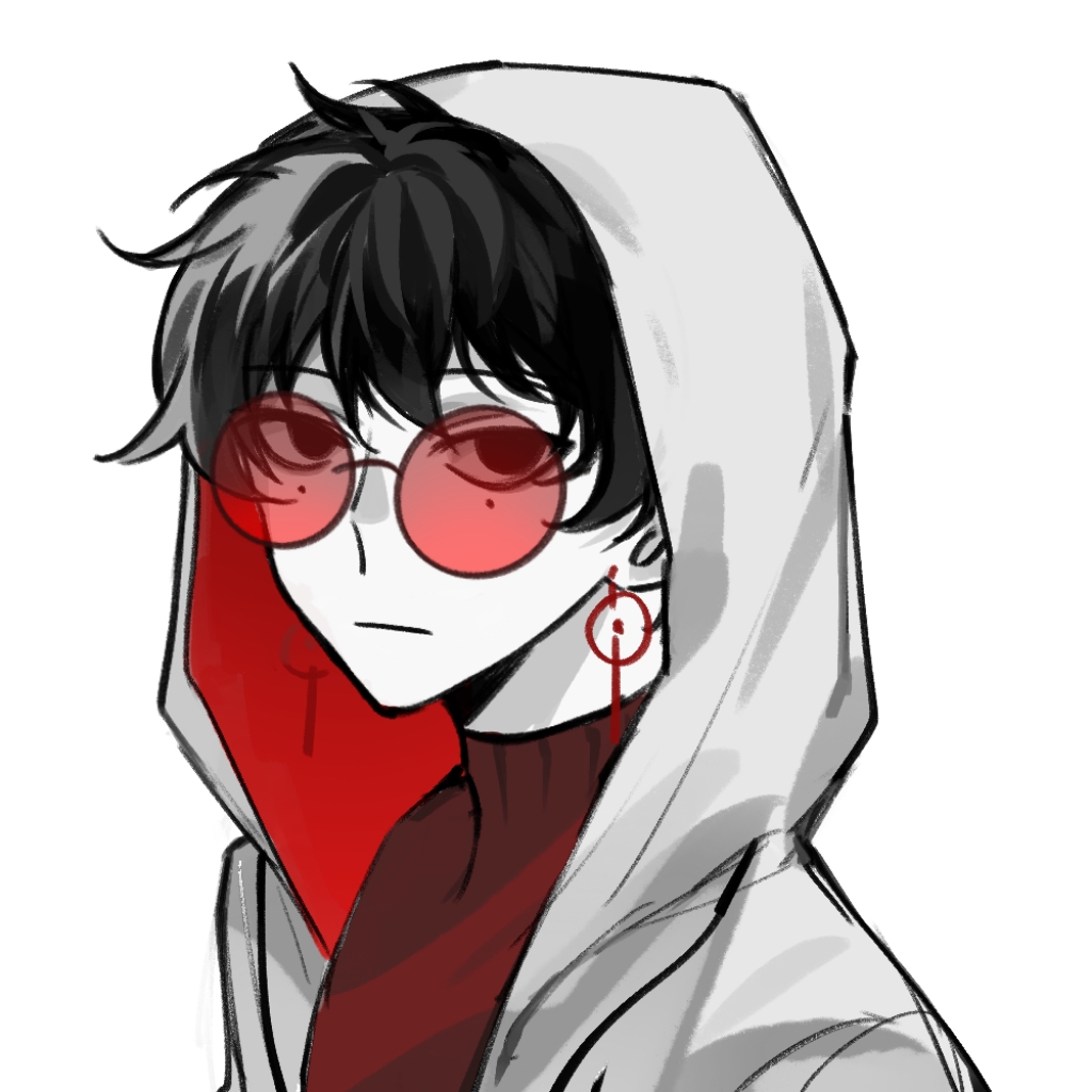 1boy :| black_eyes black_hair chinese_commentary closed_mouth colored_skin commentary_request earrings hood hood_up hooded_jacket jacket jewelry li_yuting_(male) looking_at_viewer male_focus mole mole_under_each_eye mole_under_eye multiple_moles portrait qijilan red-tinted_eyewear red_sweater round_eyewear short_hair simple_background solo sweater tinted_eyewear touqi_guaitan turtleneck turtleneck_sweater two-sided_fabric two-sided_jacket white_background white_jacket white_skin
