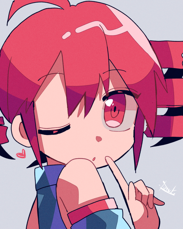 1girl ahoge detached_sleeves drill_hair heart index_finger_raised kasane_teto kasane_teto_(utau) one_eye_closed parted_lips pink_eyes pink_hair portrait shirt sleeveless sleeveless_shirt solo twin_drills utau yuusuke-kun