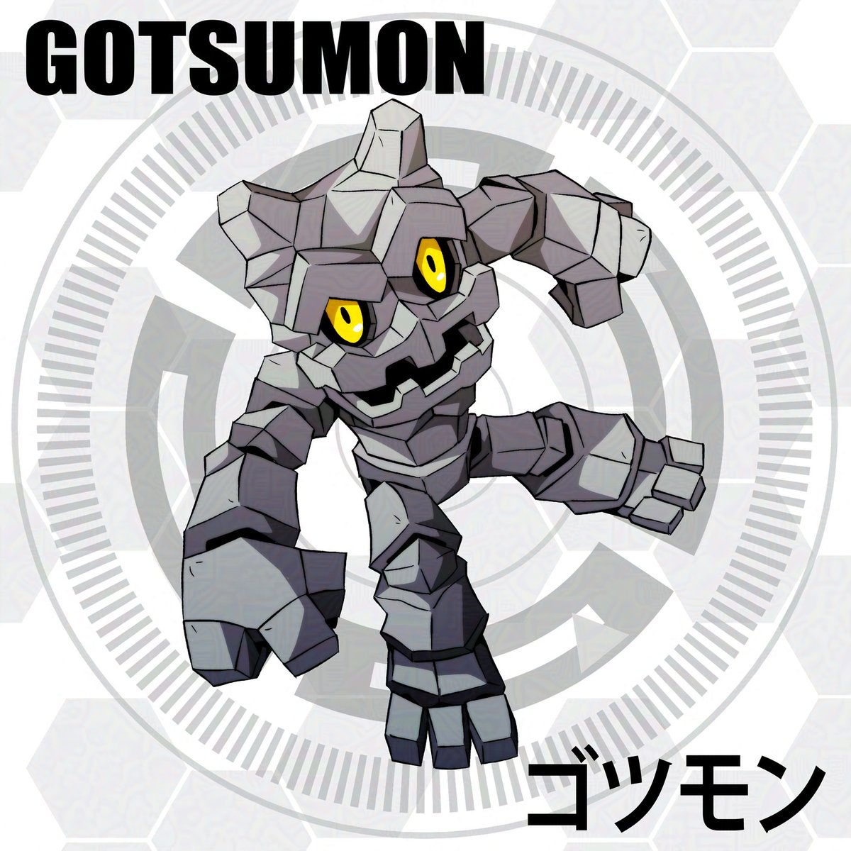 digimon digimon_(creature) golem gottsumon highres looking_at_viewer rock solo yellow_eyes