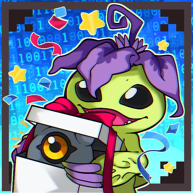 alraumon digimon digimon_(creature) fang gift happy kuramon one-eyed smile sticker