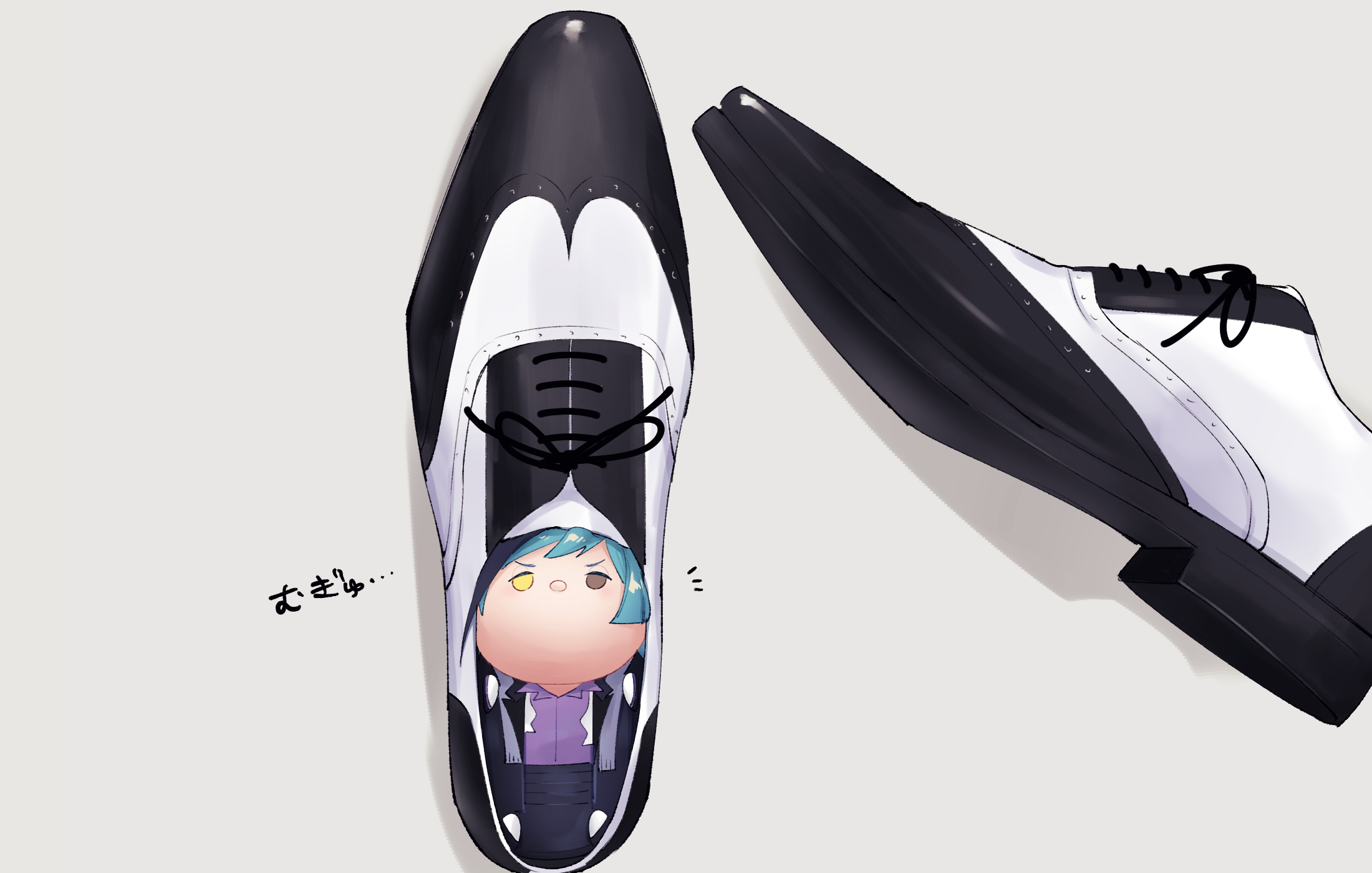 character_doll disney_tsum-tsum doll floyd_leech grey_background highres michihito no_humans shoes simple_background translation_request tsum-tsum twisted_wonderland