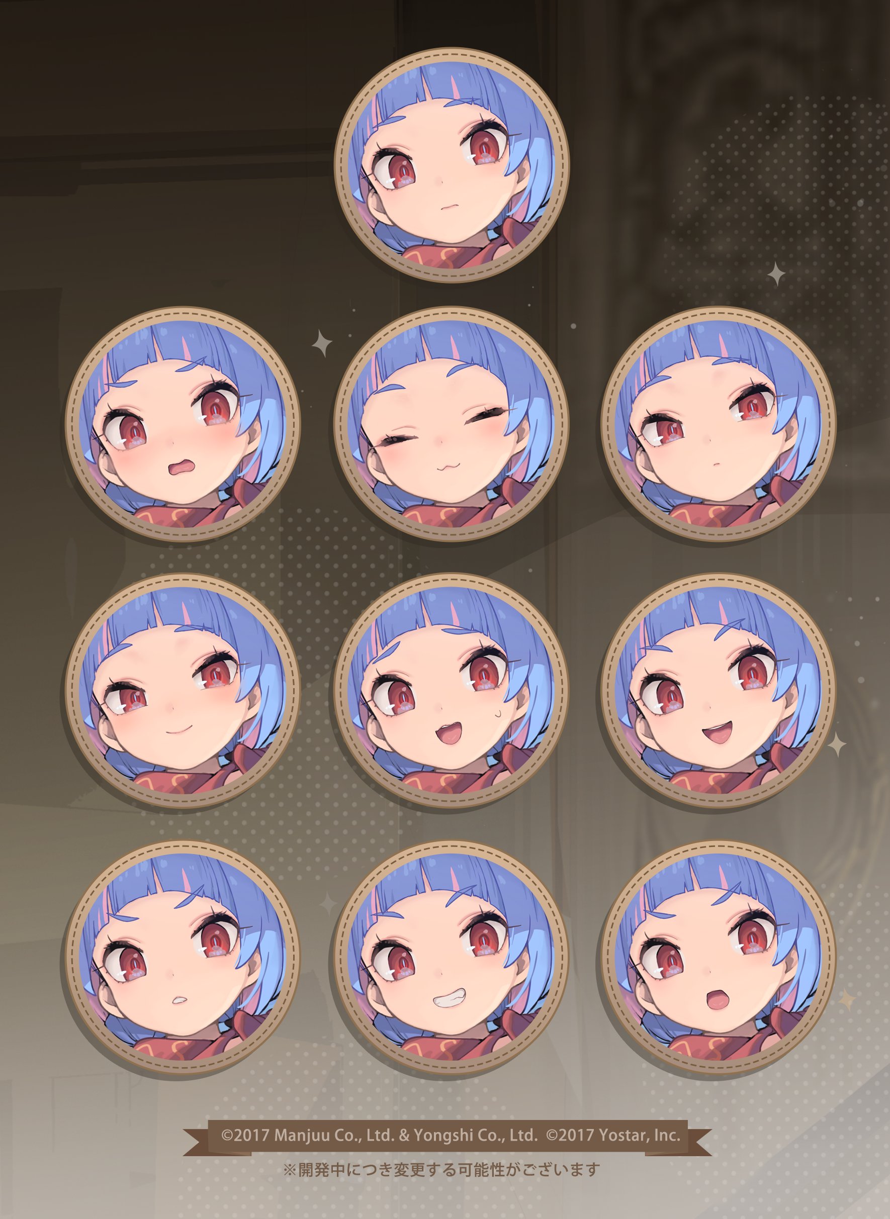 :3 :d absurdres artist_request azur_lane blue_hair blush expressionless multiple_expressions grin highres light_frown multicolored_hair official_art open_mouth pink_hair promotional_art red_eyes smile two-tone_hair u-556_(azur_lane) u-556_(prairie_knight)_(azur_lane)