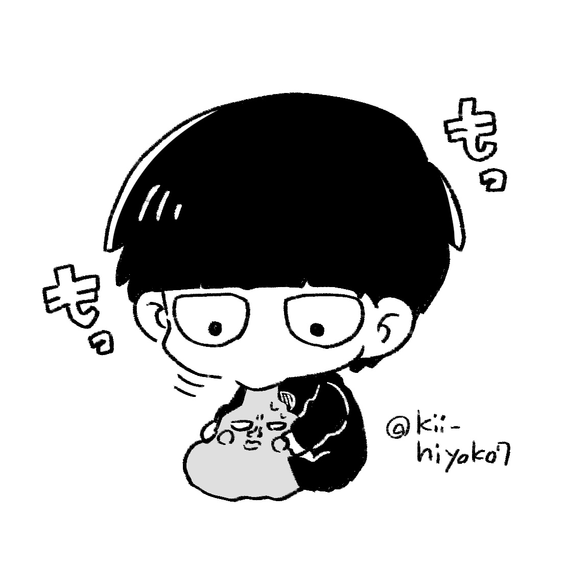 1boy aged_down child commentary_request ekubo_(mob_psycho_100) full_body greyscale kageyama_shigeo kii_hiyoko7 long_sleeves male_focus mob_psycho_100 monochrome salt_middle_school_uniform school_uniform short_hair simple_background sitting spirit translation_request twitter_username white_background