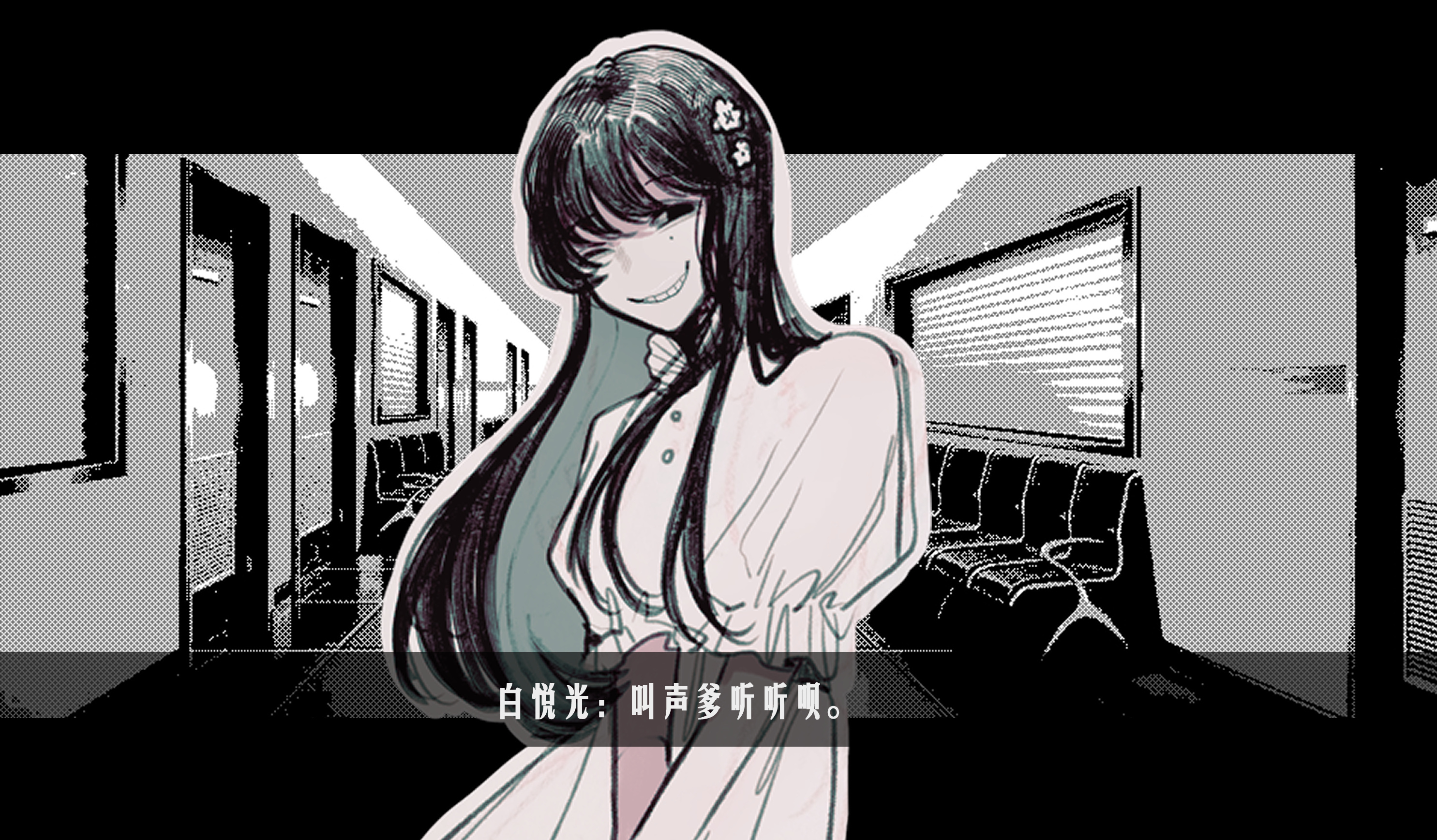 1boy black_eyes black_hair chinese_commentary chinese_text commentary_request crossdressing crossdressing_(mtf) dress flower frilled_sleeves frills grin hair_flower hair_ornament highres long_hair male_focus muluo_cantu official_art one_eye_closed promotional_art puffy_short_sleeves puffy_sleeves short_sleeves smile solo touqi_guaitan translation_request trap upper_body white_dress white_flower ziche_fuzhao