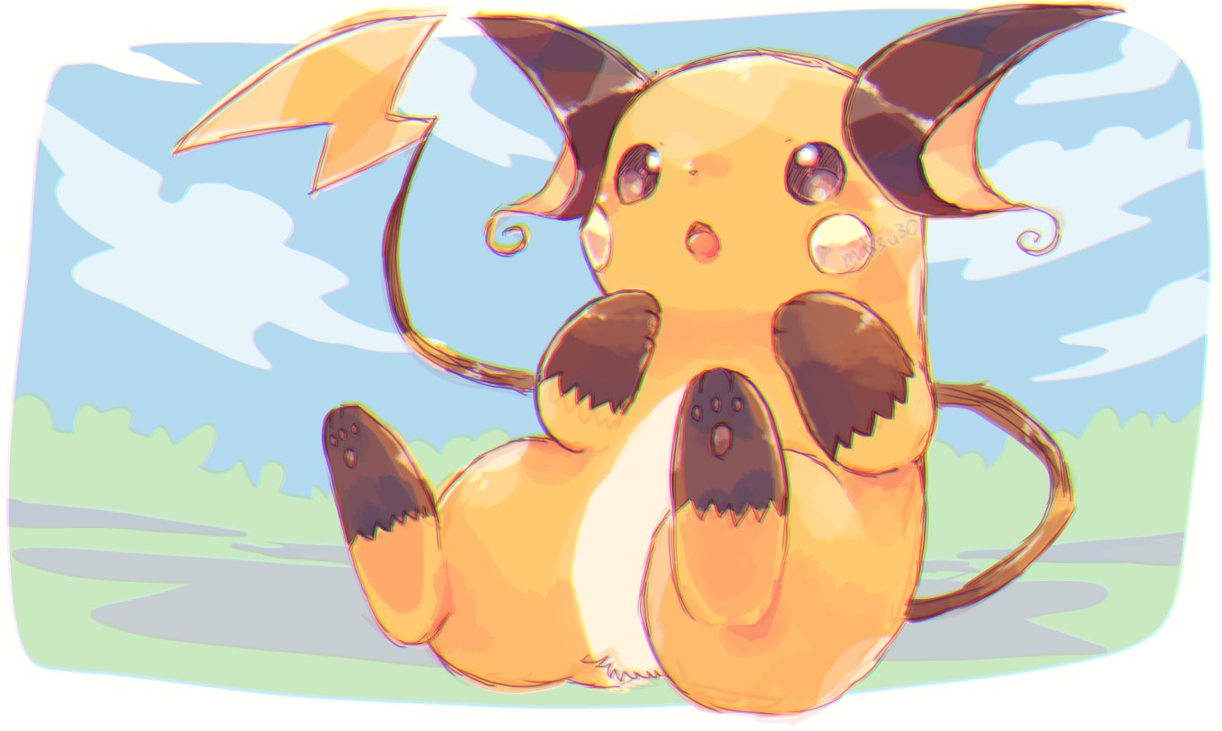 :o animal_focus brown_eyes gen_1_pokemon nintendo no_humans open_mouth pawpads pokemon pokemon_(creature) raichu roamo sitting solo