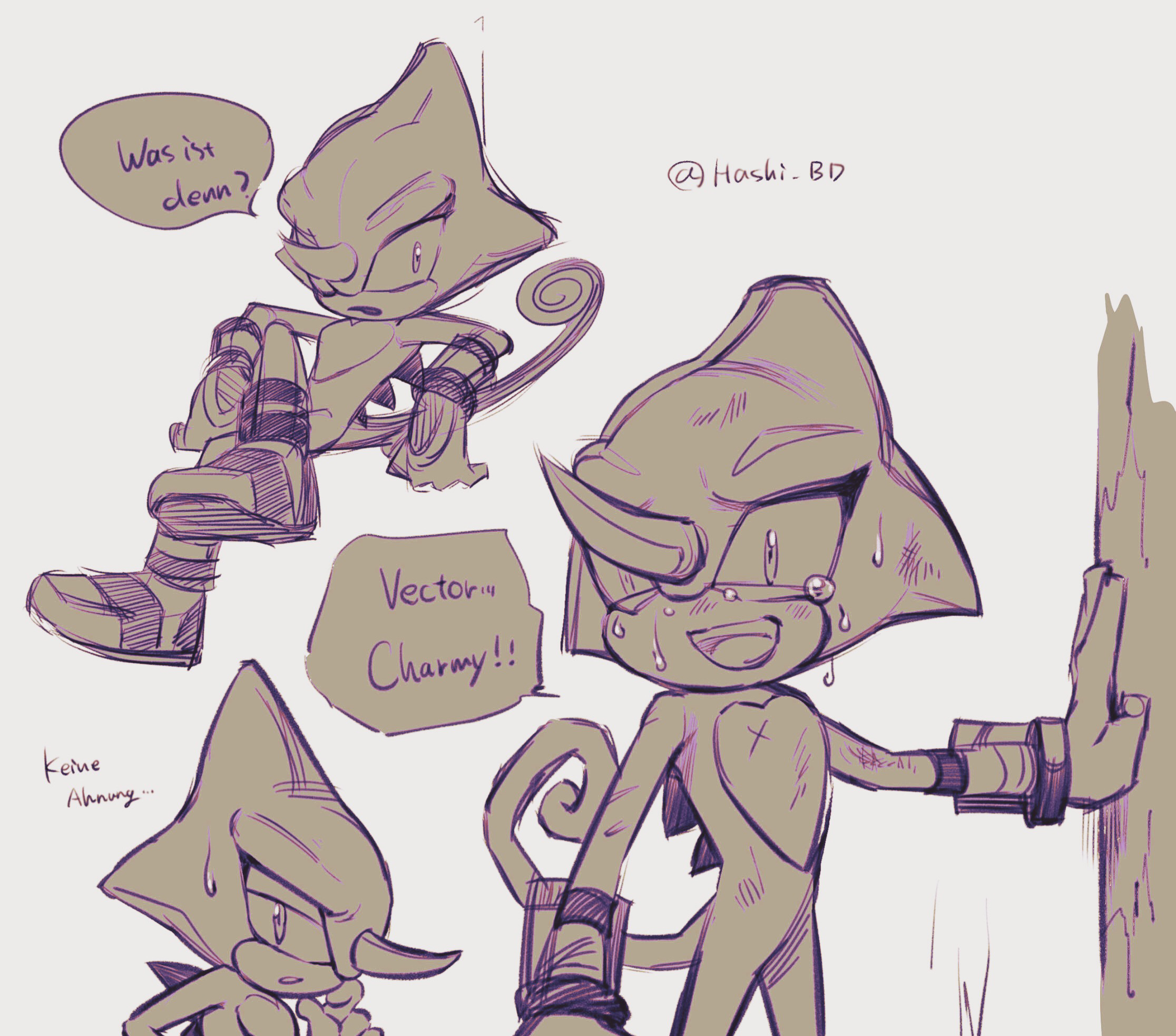 1boy commentary_request crossed_legs crying crying_with_eyes_open english_text espio_the_chameleon furry furry_male gloves hashi84e highres horns male_focus monochrome multiple_views open_mouth reptile_boy shoes simple_background single_horn sitting sonic_(series) speech_bubble standing tail tears twitter_username