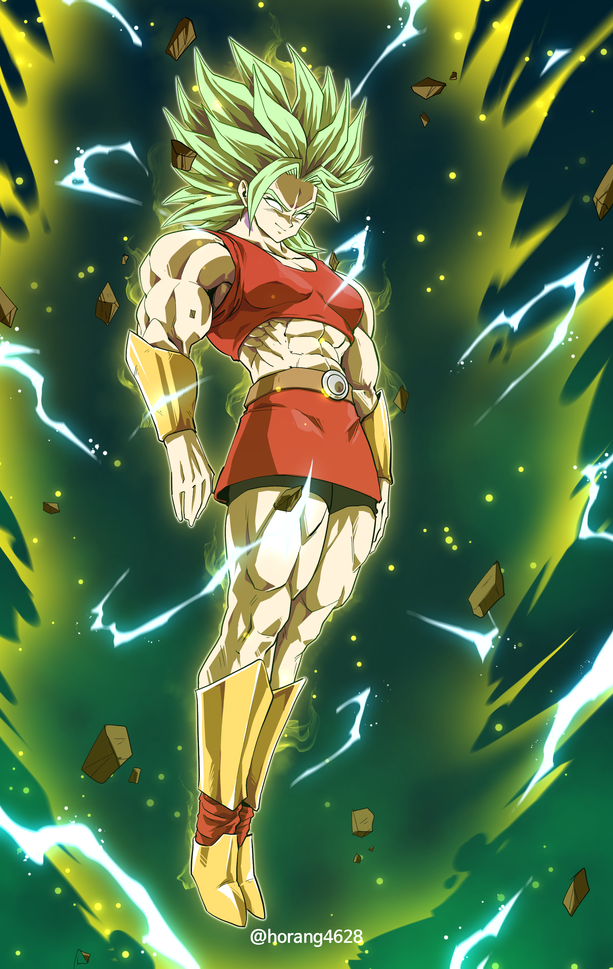 abs absurdres armlet artist_name aura belt biceps blank_eyes commentary_request crop_top dragon_ball dragon_ball_super full_body gold_armlet gold_footwear highres horang4628 kale_(dragon_ball) legendary_super_saiyan midriff muscular muscular_female saiyan shorts shorts_under_skirt skirt smirk spiked_hair super_saiyan super_saiyan_2 thighs