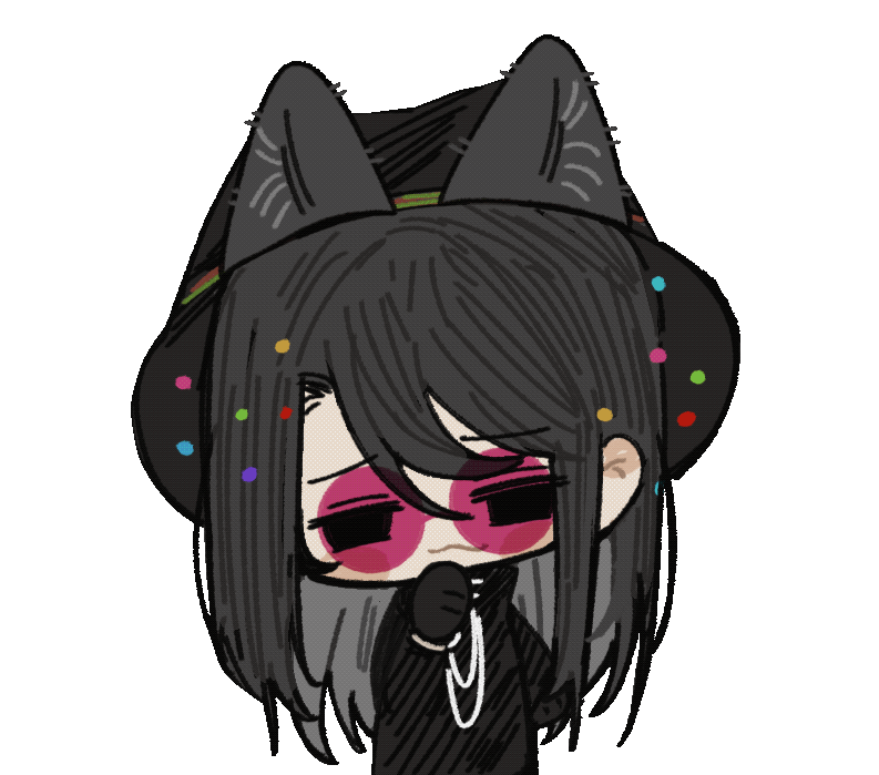 1boy :3 animal_ears animated animated_gif black_eyes black_gloves black_hair black_hat black_shirt blinking blush_stickers cat_boy cat_ears chibi chibi_only chinese_commentary closed_mouth commentary_request ear_wiggle fei_nanxue gloves hair_between_eyes hand_on_own_chin hat huai_yunqing long_hair long_sleeves male_focus pink-tinted_eyewear round_eyewear shirt simple_background solo tinted_eyewear touqi_guaitan transparent_background upper_body