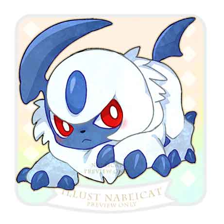 absol blush claws closed_mouth full_body gen_3_pokemon horns looking_at_viewer lowres neck_ruff nintendo no_humans pokemon pokemon_(creature) red_eyes simple_background single_horn solo tail yencatx