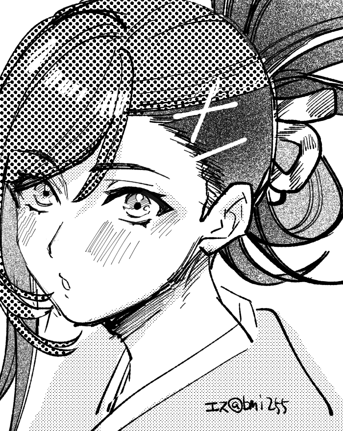 1boy asymmetrical_bangs esu_(b_r9) fire_emblem fire_emblem_engage folded_ponytail greyscale hair_ornament hairclip kagetsu_(fire_emblem) looking_at_viewer male_focus monochrome nintendo portrait