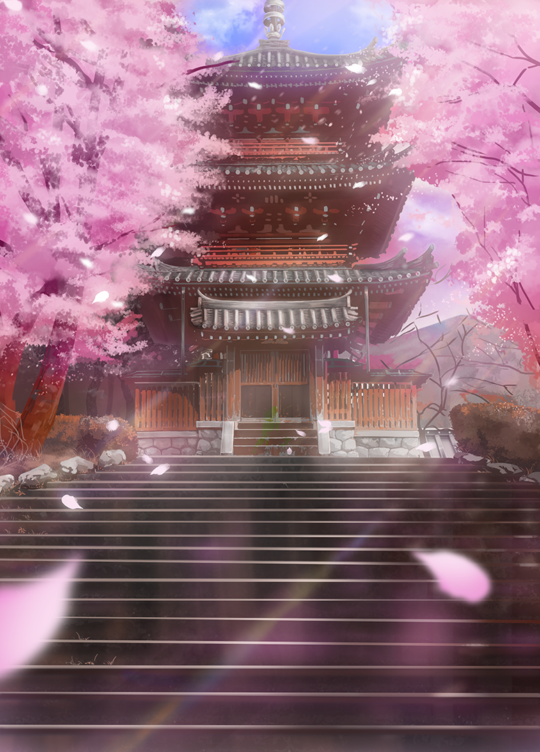 architecture bush cherry_blossoms commentary_request day east_asian_architecture falling_petals kamo_nasus. no_humans original outdoors petals scenery stairs sunlight tree
