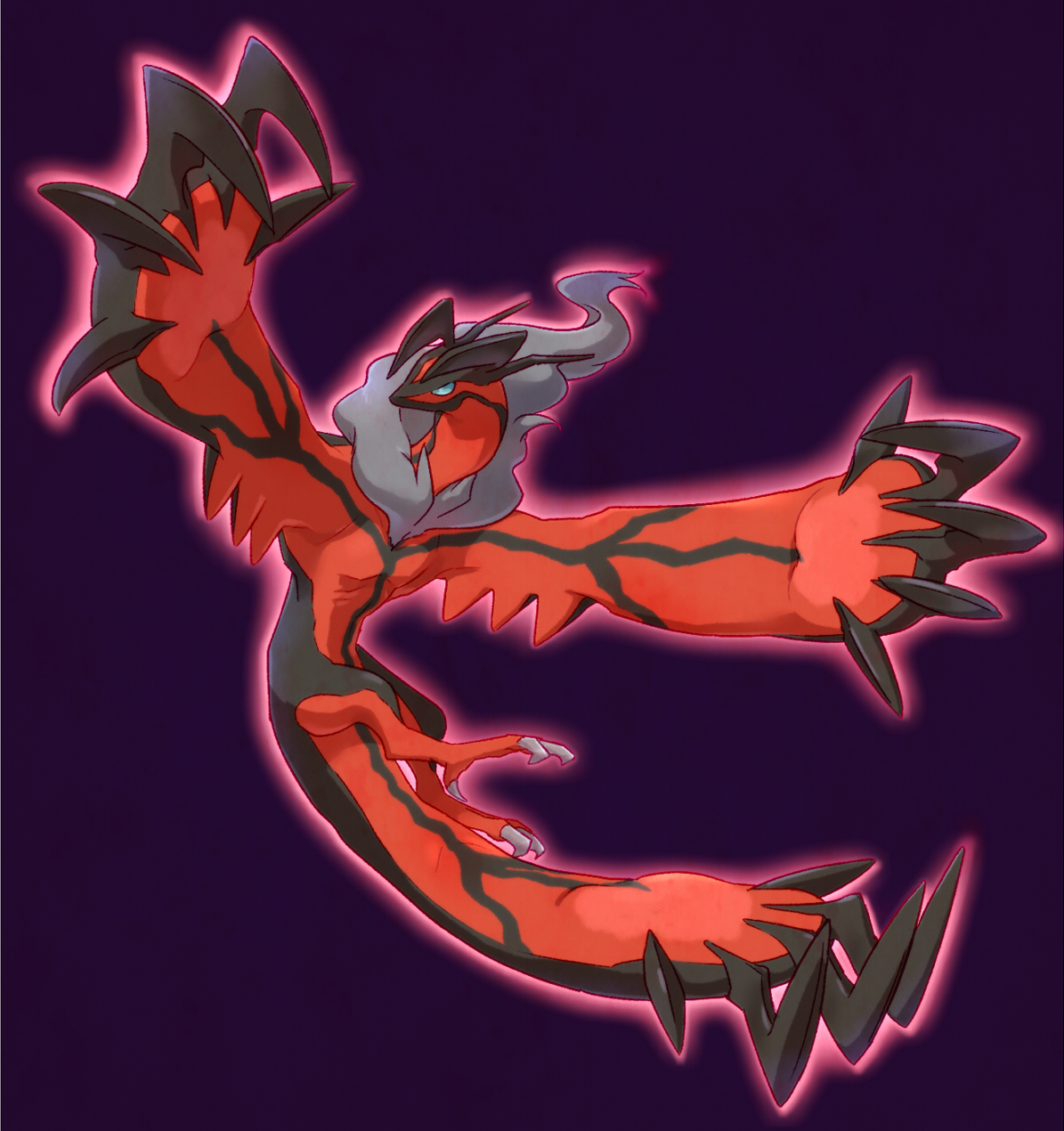 claws colored_skin gen_6_pokemon highres kaniharu legendary_pokemon nintendo no_humans pokemon pokemon_(creature) purple_background red_skin simple_background solo wings yveltal