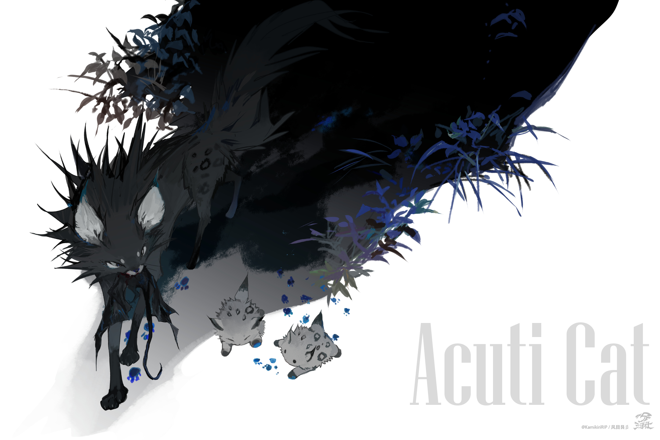 animal animal_ears animal_feet animal_focus black_fur black_tail blue_flower cub flower footprints from_above grass grey_fur highres kamikiririp no_humans original white_background