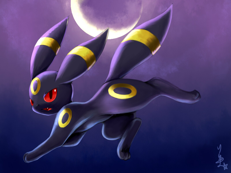 10s animal animal_focus black_eyes colored_sclera fang gen_2_pokemon looking_at_viewer moon night nintendo no_humans open_mouth pokemon pokemon_(creature) red_sclera ryuma210 solo umbreon