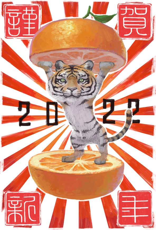 2022 animal animal_ears chinese_zodiac commentary_request cub edomon_(toriaezu) food fruit mandarin_orange no_humans original tail tiger tiger_ears tiger_tail translation_request year_of_the_tiger