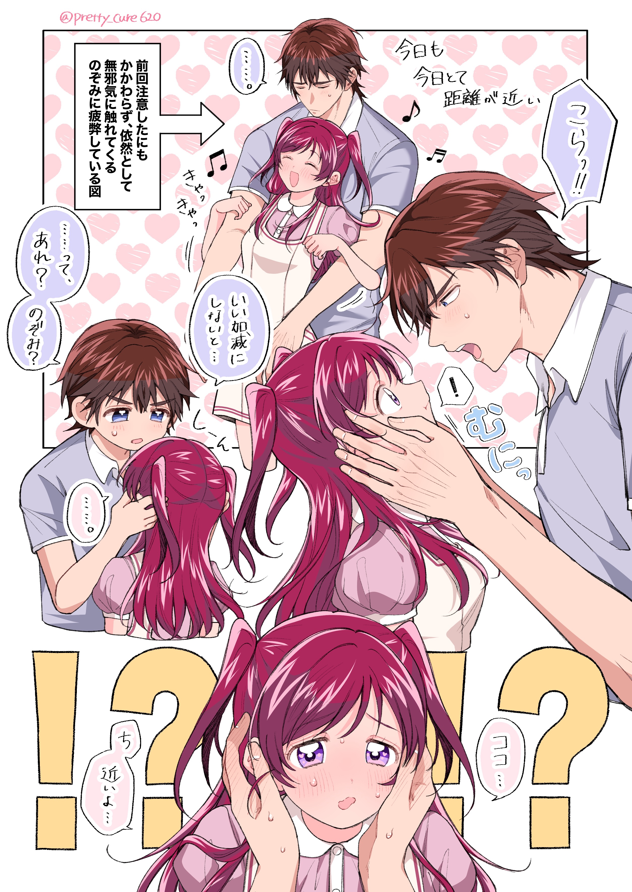 1boy 1girl absurdres blue_eyes blue_shirt blush brown_hair closed_eyes coco_(precure) dress hand_on_another's_face highres kibou_no_chikara_otona_precure_'23 kokoda_kouji medium_hair non_(pretty_cure620) open_mouth pink_eyes pink_hair pink_shirt precure shirt short_hair sleeveless sleeveless_dress smile sweatdrop twitter_username two_side_up white_dress yes!_precure_5 yes!_precure_5_gogo! yumehara_nozomi