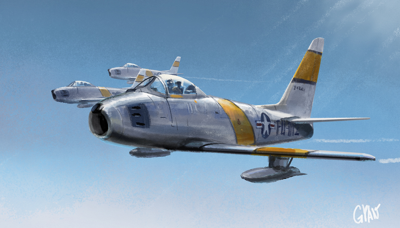1other aircraft airplane f-86_sabre fighter_jet flying gyan_(akenosuisei) military military_vehicle original pilot sky united_states_air_force vehicle_focus