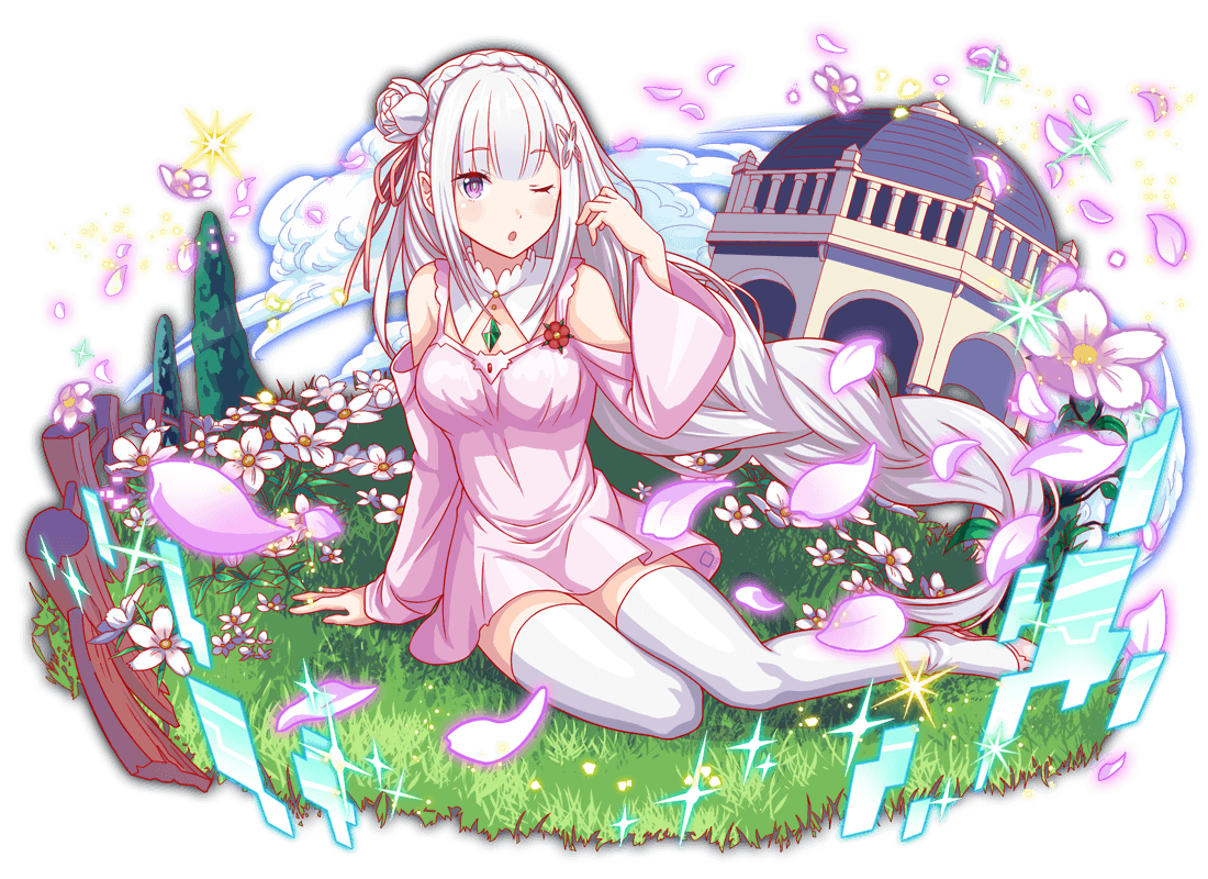 1girl alternate_costume alternate_hairstyle anime_coloring aqua_pupils artist_request bare_shoulders blunt_bangs braid braided_ponytail breasts bright_pupils building bush collar crash_fever crown_braid detached_collar dot_nose dress dress_flower emilia_(re:zero) eyelashes fence field flats flower flower_field full_body game_cg gem gradient_petals grass green_gem grey_hair hair_flower hair_ornament hair_ribbon lace-trimmed_collar lace_trim large_breasts leaf light_blush light_particles long_hair long_sidelocks long_sleeves looking_at_viewer low-braided_long_hair low-tied_long_hair number_print numbered off-shoulder_dress off_shoulder official_alternate_costume official_alternate_hairstyle official_art official_style on_ground one_eye_closed open_mouth outdoors outline petals pink_dress pink_ribbon pink_sleeves print_dress purple_eyes purple_petals re:zero_kara_hajimeru_isekai_seikatsu red_flower red_outline ribbon shoes short_dress sidelocks single_sleeve_past_wrist sitting solo sparkle square square_print straight_hair strap tachi-e thighhighs third-party_source too_many_flowers transparent_background white_collar white_flower white_petals white_thighhighs wide_sleeves x_hair_ornament yokozuwari