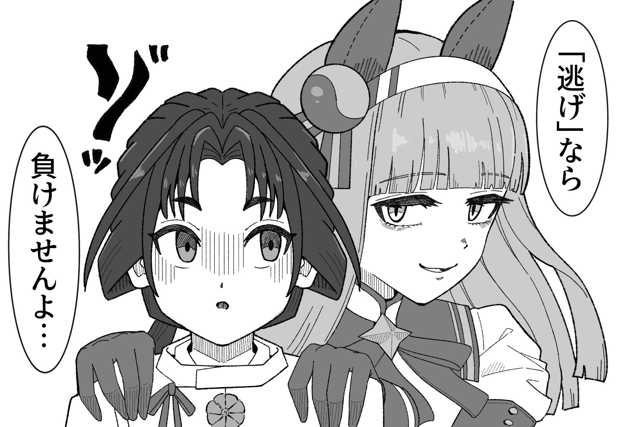 1girl animal_ears ear_covers hair_ornament hairband highres hime_cut horse_ears horse_girl horse_tail hu-min_(okok6341) long_hair long_sleeves nige_jouzu_no_wakagimi ponytail silence_suzuka_(innocent_silence)_(umamusume) silence_suzuka_(umamusume) smile tail umamusume white_hairband