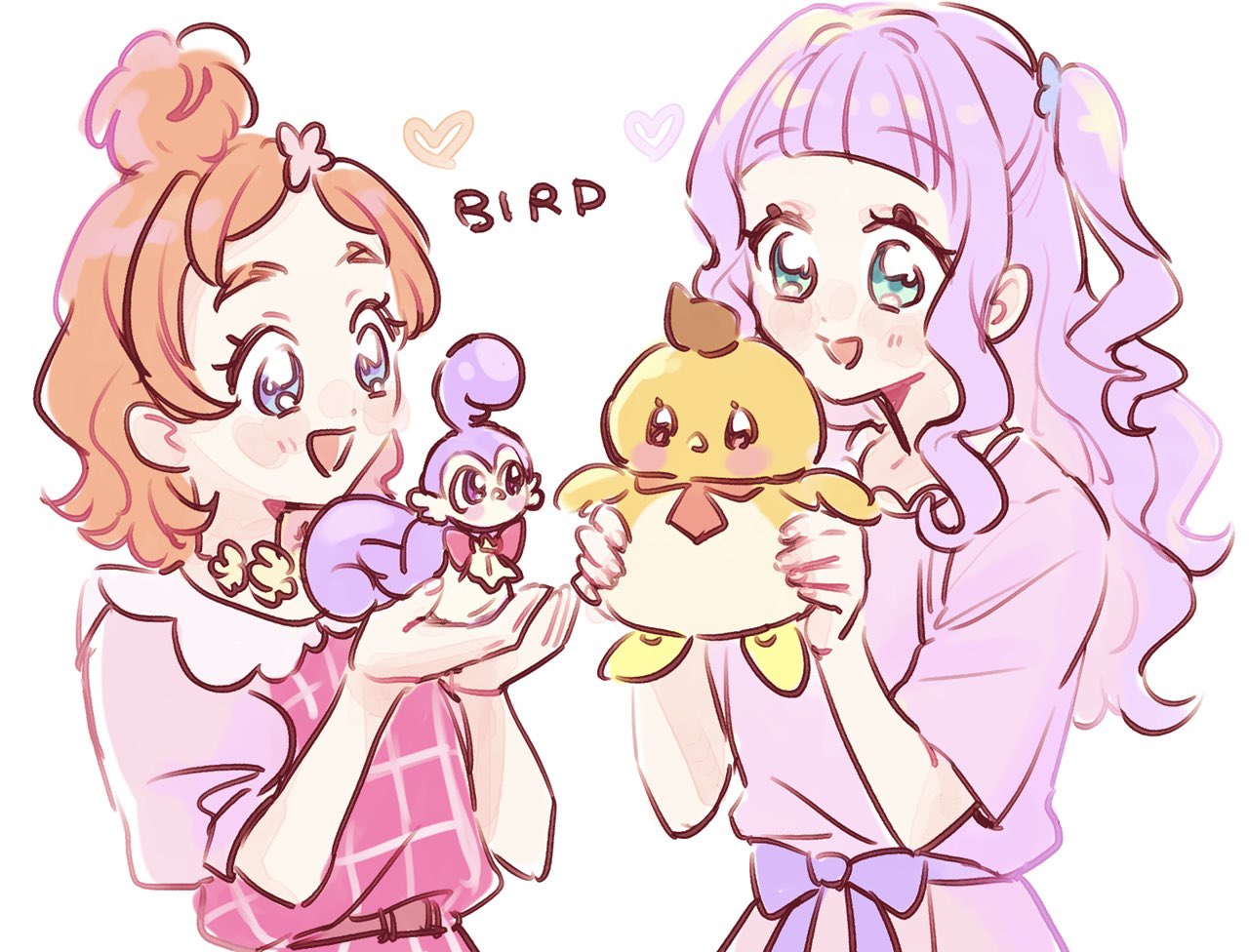 aroma_(precure) bird ellee-chan go!_princess_precure haruno_haruka hirogaru_sky!_precure non-web_source precure yuriko_(yurikonicc) yuunagi_tsubasa