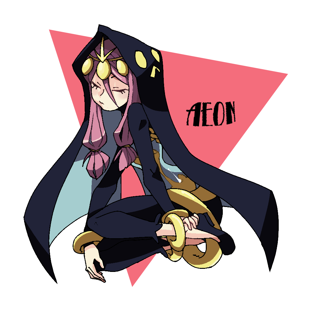1girl aeon_(skullgirls) anklet artist_name border bracelet cape character_name closed_eyes full_body hood hourglass jewelry kyouhei_hei leggings pink_background pink_hair sand shoes shrug_(clothing) sitting skullgirls solo tiara twintails white_border