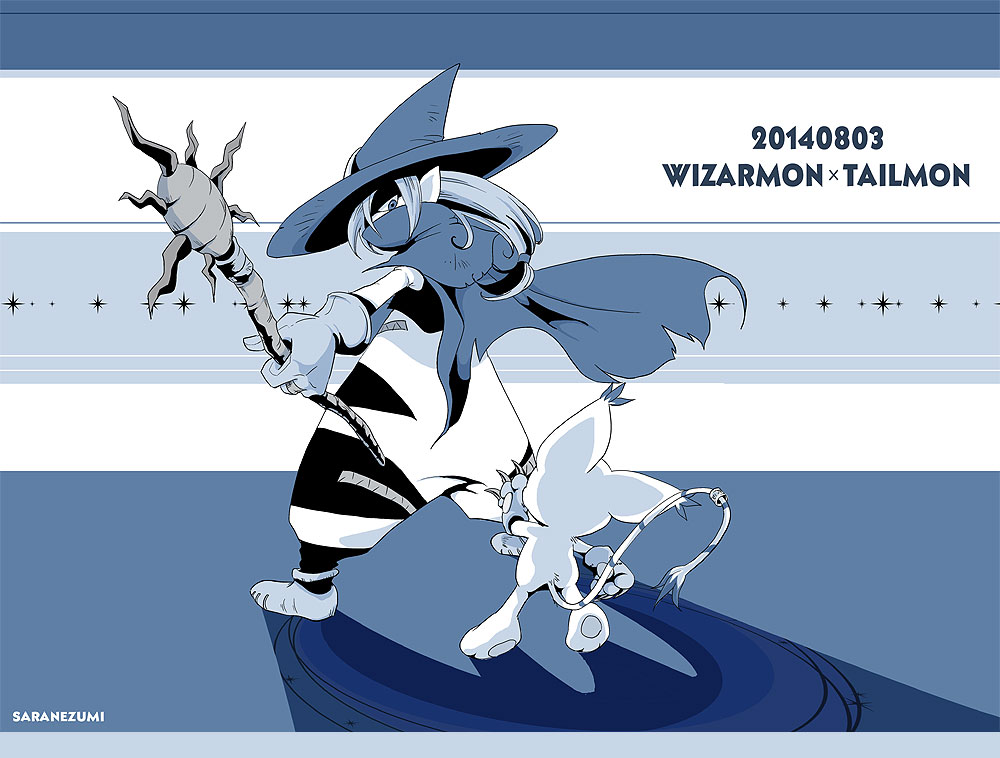animal_ears cat cat_ears digimon digimon_(creature) gloves hat holy_ring skull tail tailmon wizard wizard_hat wizarmon