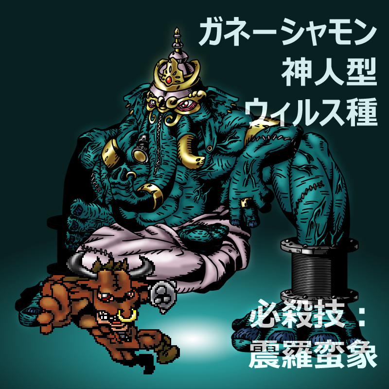 digimon digimon_(creature) horns minotaurmon oridigi original red_eyes sharp_teeth teeth