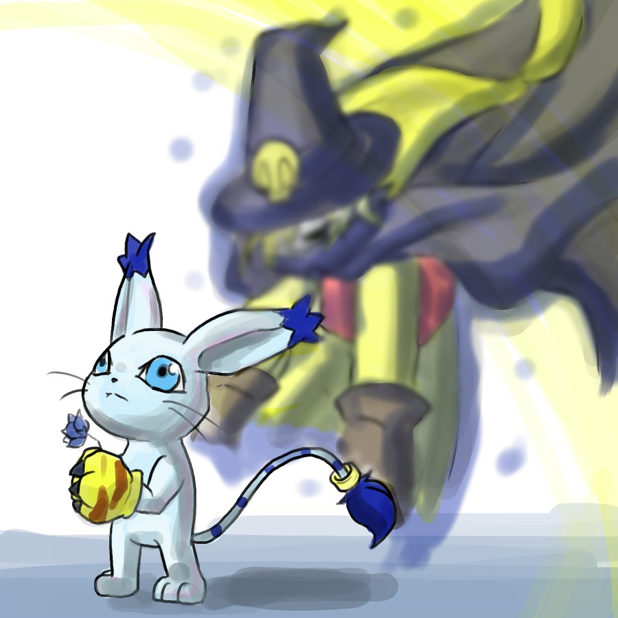 animal_ears cat cat_ears digimon digimon_(creature) gloves hat holy_ring skull tail tailmon wizard wizard_hat wizarmon