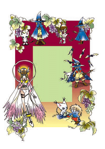 angel angel_girl angewomon animal_ears cat cat_ears digimon digimon_(creature) gloves hat head_wings holy_ring long_hair mask skull tail tailmon wings wizard wizard_hat wizarmon yagami_hikari