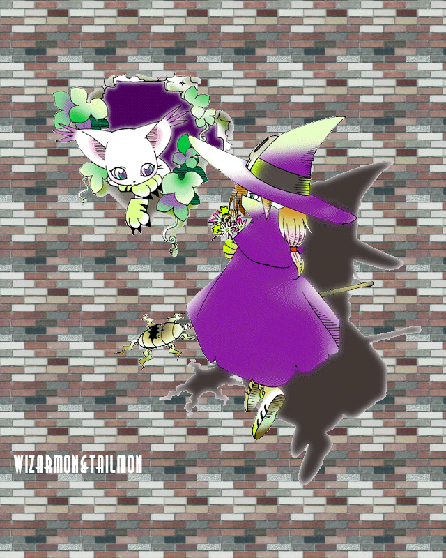 animal_ears cat cat_ears digimon digimon_(creature) gloves hat holy_ring skull tail tailmon wizard wizard_hat wizarmon