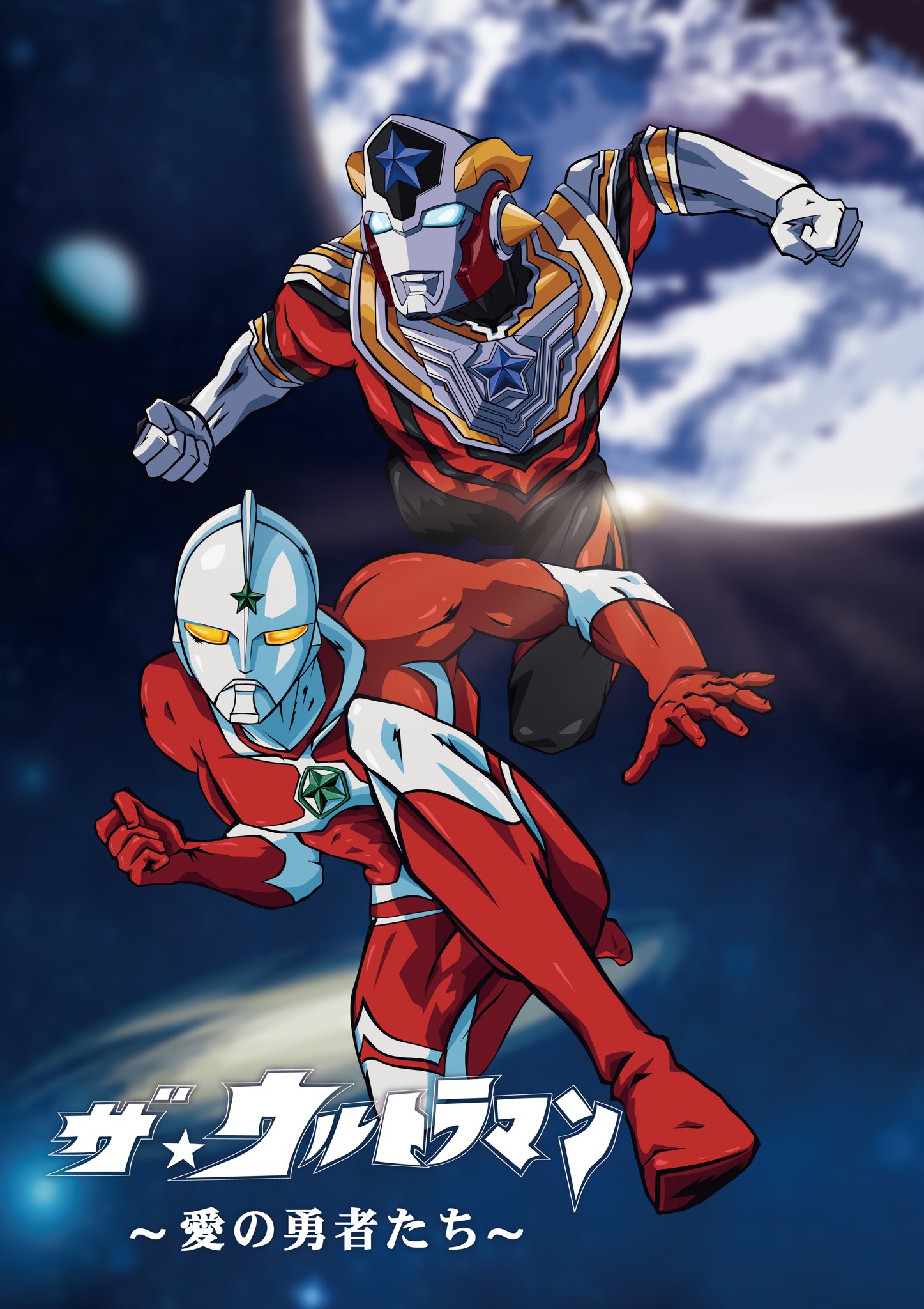 blue_eyes color_timer copyright_logo full_body galaxy highres logo male_focus multicolored_eyes muscular muscular_male no_humans planet space spikes star_(symbol) the_ultraman_(anime) tokusatsu two-tone_eyes ultra_series ultraman_joneus ultraman_taiga_(series) ultraman_titas ultrataku white_eyes yellow_eyes