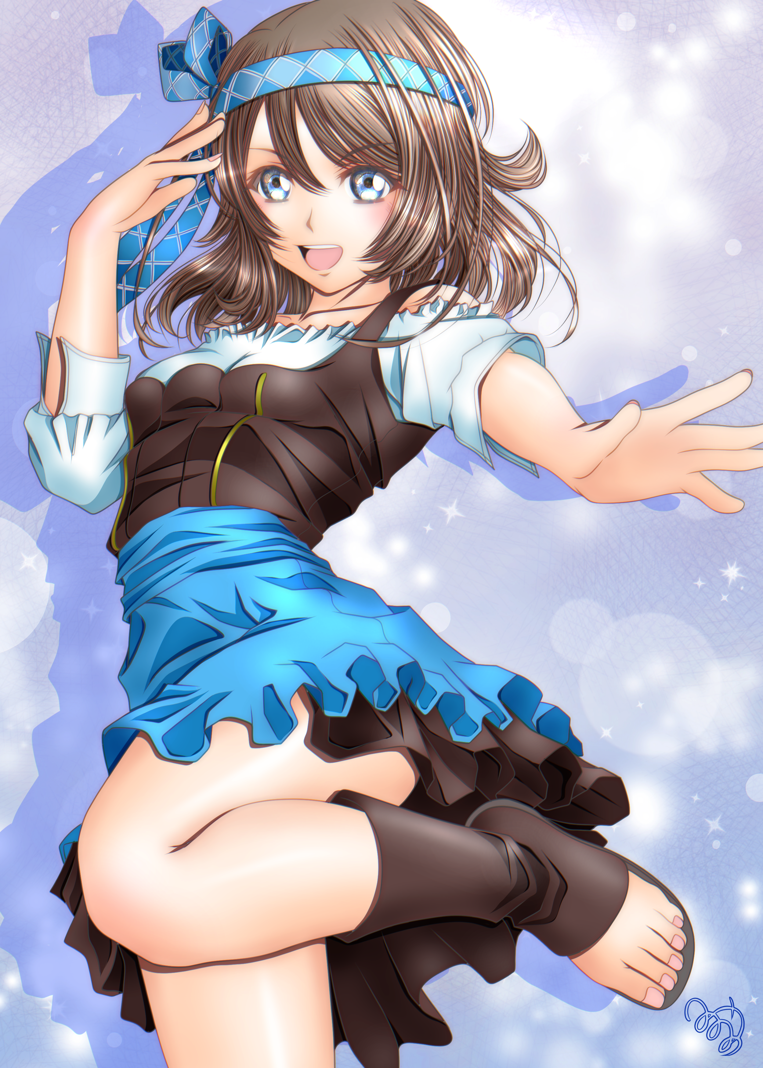 1girl absurdres blue_eyes brown_hair highres looking_at_viewer love_live! love_live!_sunshine!! minami_saan open_mouth short_hair short_sleeves smile solo watanabe_you