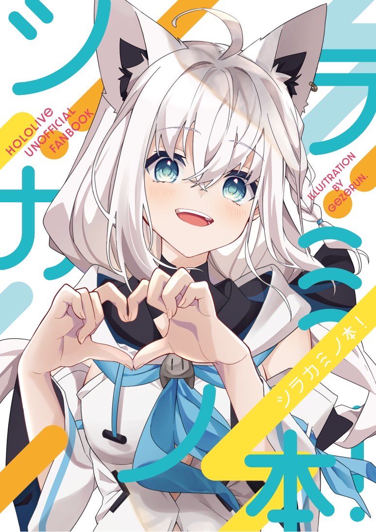 1girl ahoge animal_ear_fluff animal_ears aqua_eyes blush braid breasts detached_sleeves fox_ears fox_girl gezerun hair_between_eyes heart heart_hands hololive hood looking_at_viewer medium_breasts open_mouth shirakami_fubuki smile solo upper_body virtual_youtuber white_hair