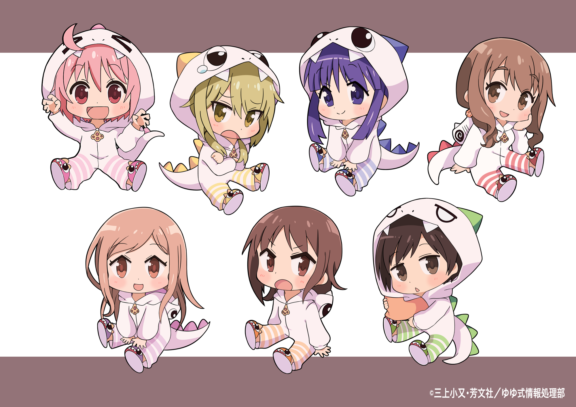 6+girls ahoge aikawa_chiho blonde_hair blush brown_eyes brown_hair chibi chibi_only closed_mouth crossed_arms hasegawa_fumi highres hinata_yukari ichii_yui long_hair long_sleeves looking_at_viewer low_twintails matsumoto_yoriko medium_hair miyata_(lhr) multiple_girls nonohara_yuzuko okano_kei onesie open_mouth pink_eyes pink_hair purple_eyes purple_hair short_hair short_twintails smile triangle_mouth twintails yuyushiki