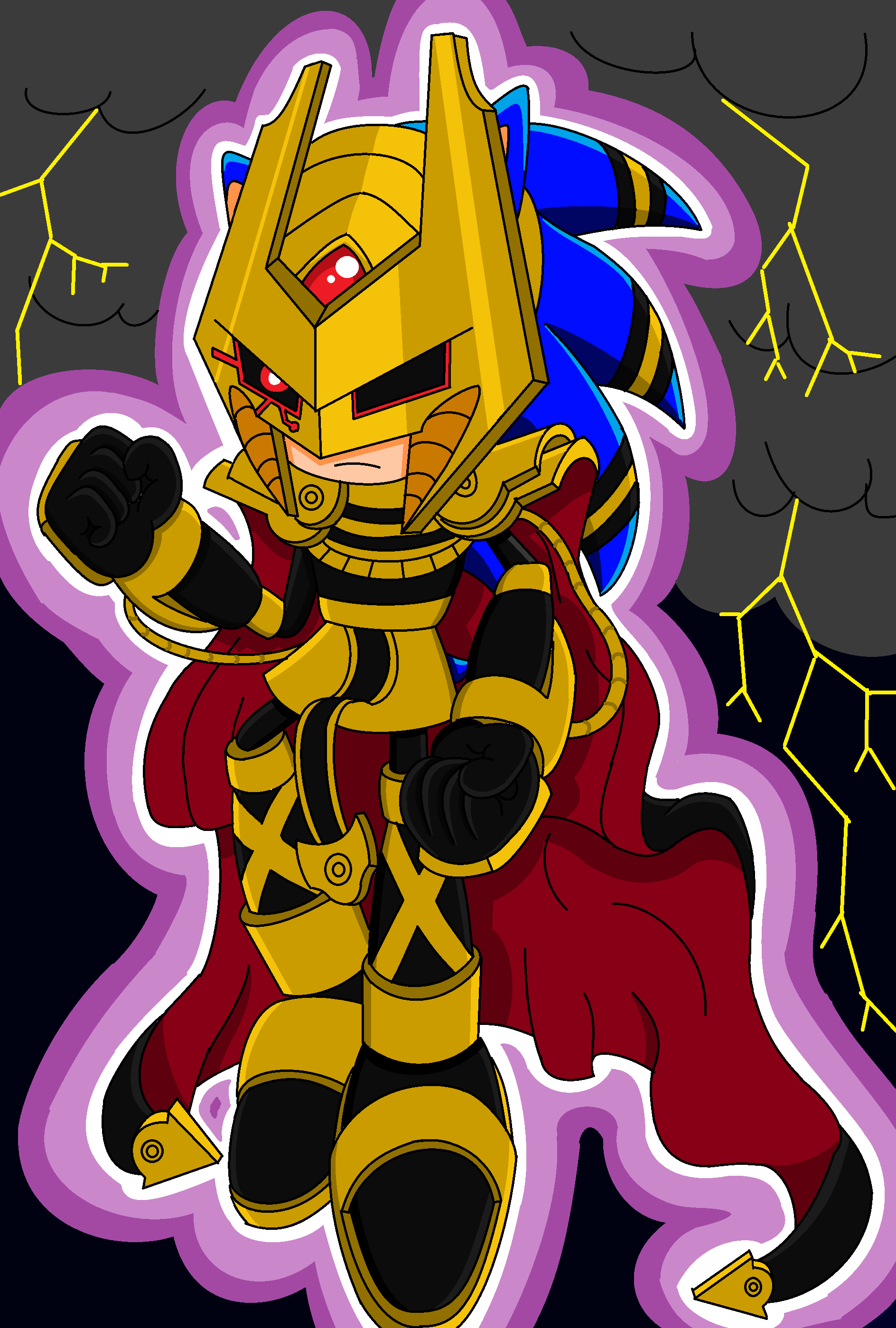 1boy absurdres alternate_costume alternate_eye_color armor aura cape clenched_hands cloud cloudy_sky commentary corruption dark_aura dark_persona electricity enerjak_(sonic) english_commentary floating forehead_jewel frown gem hedgehog_boy highres mask pauldrons possessed possession red_eyes red_gem sega shoulder_armor sky sonic_(series) sonic_the_hedgehog sonic_the_hedgehog_(archie_comics) supersentaihedgehog thunder