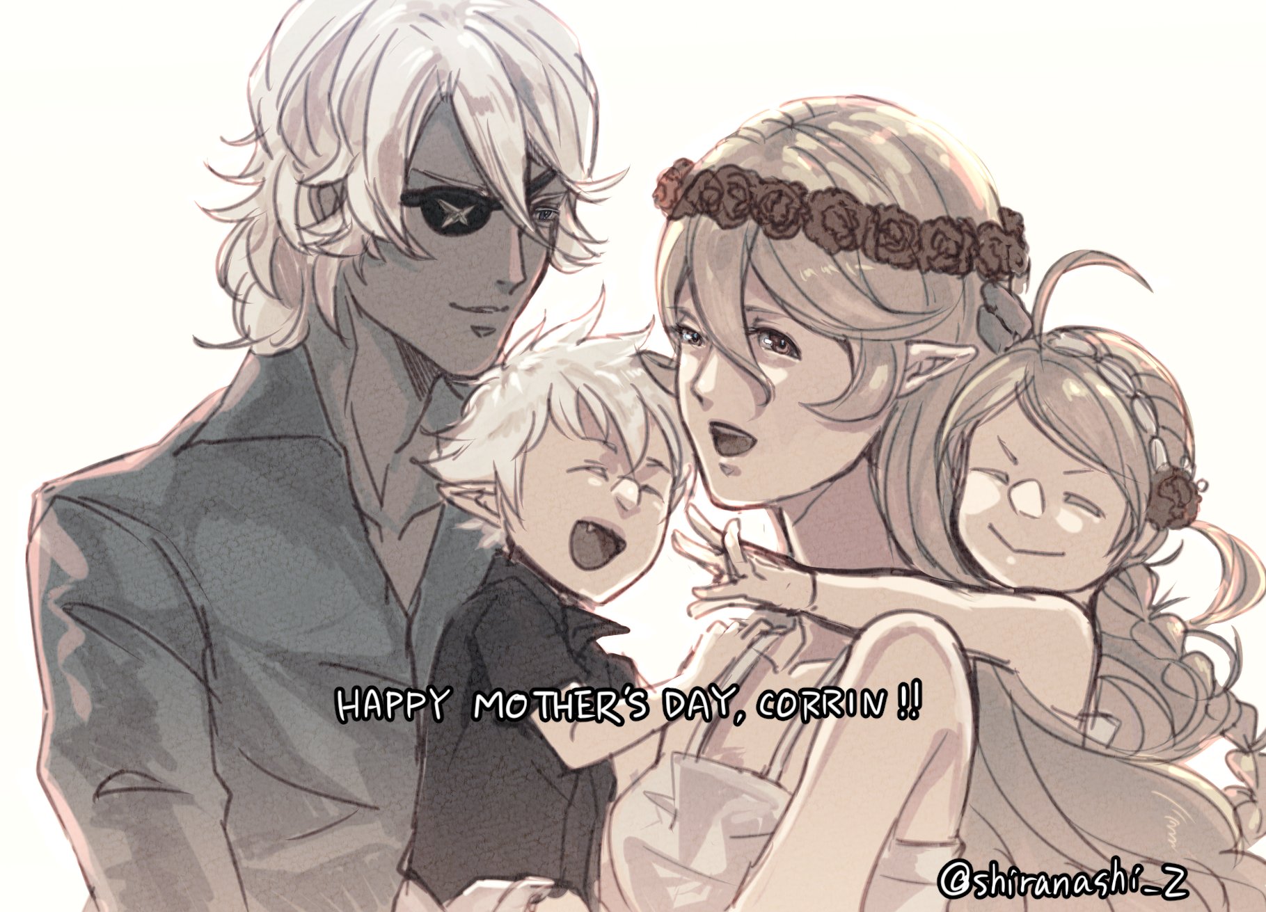 2boys 2girls aged_down braid eyepatch family father_and_child father_and_daughter father_and_son female_corrin_(fire_emblem) fire_emblem fire_emblem_fates group_hug hairband happy_mother's_day highres hug low_twin_braids male_kana_(fire_emblem) mother_and_child mother_and_daughter mother_and_son multiple_boys multiple_girls niles_(fire_emblem) nina_(fire_emblem) nintendo parent_and_child pointy_ears shiranashi_z twin_braids white_hairband