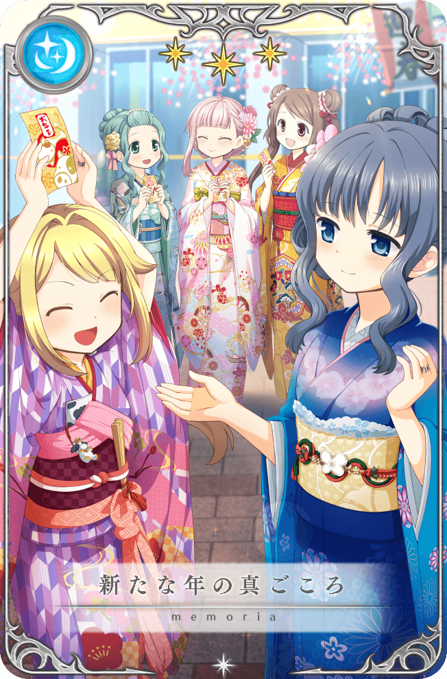 5girls ^_^ arms_up artist_request bangs_pinned_back beads blonde_hair blue_eyes blue_hair blue_kimono blue_sash blunt_bangs bow brick_road building card card_(medium) checkered_clothes checkered_kimono checkered_sash closed_eyes closed_mouth cow cowboy_shot day dot_nose double_bun floral_print flower full_body futaba_sana futaba_sana_(haregi_costume) game_cg green_eyes green_hair green_kimono hair_beads hair_bow hair_bun hair_flower hair_intakes hair_ornament hair_ribbon hair_rings happy haregi holding holding_card japanese_clothes jewelry kimono leaf light_blush light_particles long_hair long_sleeves looking_at_another magia_record:_mahou_shoujo_madoka_magica_gaiden mahou_shoujo_madoka_magica mitsuki_felicia_(haregi_costume) multiple_girls nanami_yachiyo nanami_yachiyo_(haregi_costume) obi official_alternate_costume official_art omikuji open_mouth orange_eyes orange_kimono outdoors outstretched_hand palms picture_frame pink_bow pink_flower pink_hair pink_kimono pink_sash purple_kimono red_ribbon red_sash ribbon ring sash short_hair_with_long_locks single_hair_bun single_sidelock smile star_(symbol) tamaki_iroha tamaki_iroha_(haregi_costume) tareme translated tsurime unmoving_pattern wavy_hair white_flower wide_sleeves yellow_flower yellow_sash yui_tsuruno yui_tsuruno_(haregi_costume)
