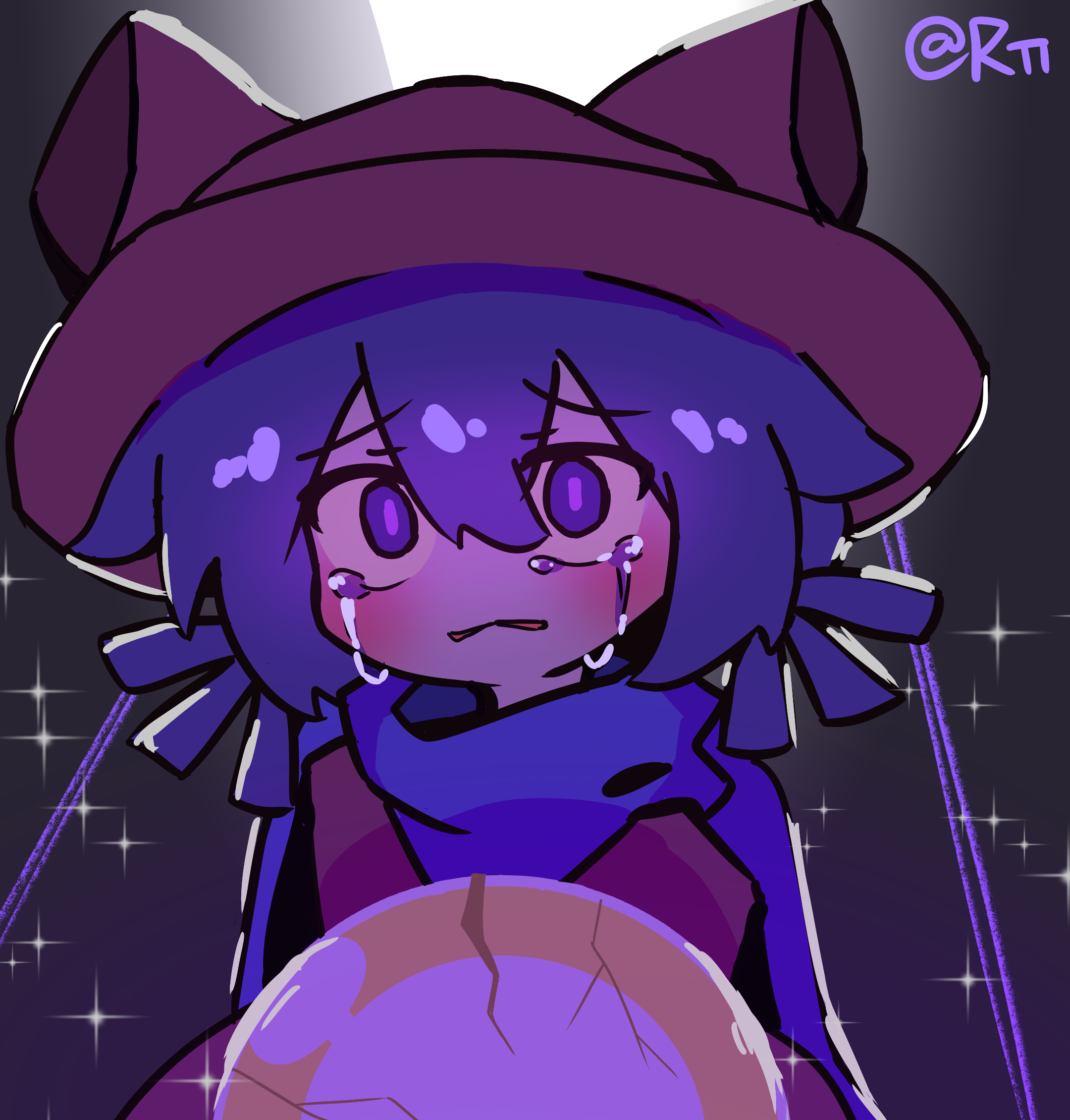 1other androgynous animal_ear_headwear animal_ears animal_hat blue_hair blue_scarf blush brown_poncho brown_tunic cat_ears cat_hat crying crying_with_eyes_open fake_animal_ears hat highres holding light_bulb niko_(oneshot) oneshot_(game) purple_eyes purple_hair purple_scarf rakey_xwx scarf short_hair slit_pupils solo sparkle_background teardrop tears tunic watermark whiskers