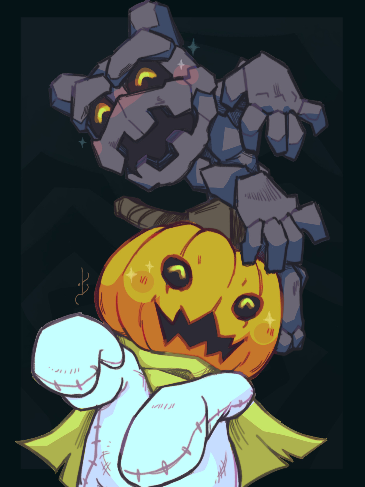 closed_eyes digimon digimon_(creature) golem gottsumon highres pumpkin pumpmon rock