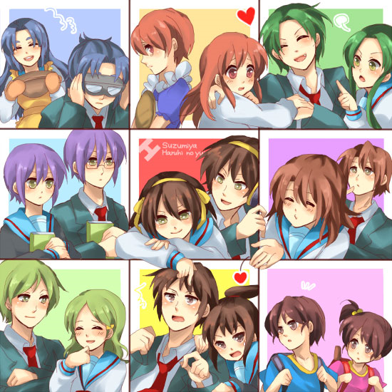 6+boys 6+girls asahina_mikuru asahina_mitsuru asakura_ryo asakura_ryoko blue_hair blush brown_hair child dual_persona gender_request genderswap green_hair hairband happy headphones heart kimidori_emiri koizumi_itsuki koizumi_itsuki_(female) kyon kyon_no_imouto kyonko long_hair maid multiple_boys multiple_girls nagato_yuki nagato_yuuki ponytail purple_hair short_hair side_ponytail smile suzumiya_haruhi suzumiya_haruhi_no_yuuutsu suzumiya_haruhiko