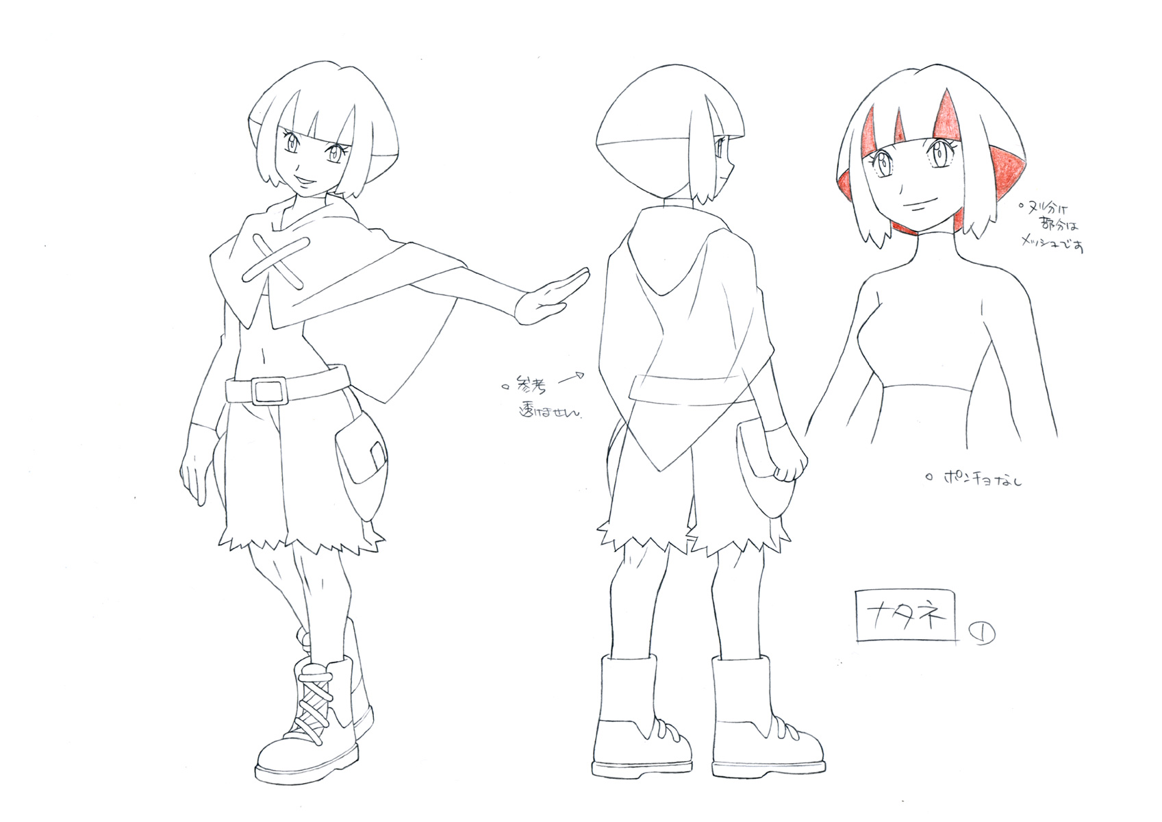 00s 1girl 2024_pokemon_teraleak bob_cut breasts concept_art full_body gardenia_(pokemon) highres monochrome multicolored_hair multiple_views nintendo non-web_source official_art pokemon pokemon_(anime) pokemon_the_series:_diamond_and_pearl reference_sheet short_hair smile standing translation_request turnaround two-tone_hair unworn_vest vest white_background wide_hips